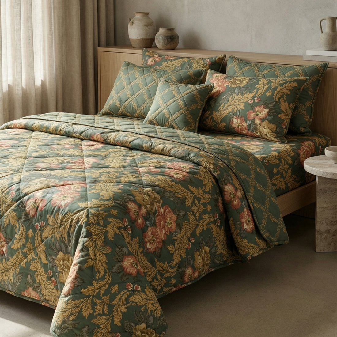 7-Piece Premium Printed Comforter Set – King Size | Green