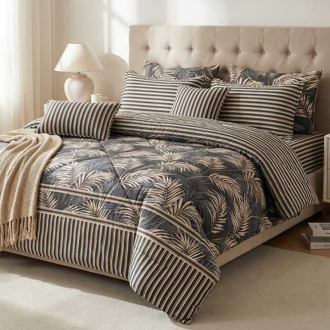 7-Piece Premium Printed Comforter Set – King Size | Beige