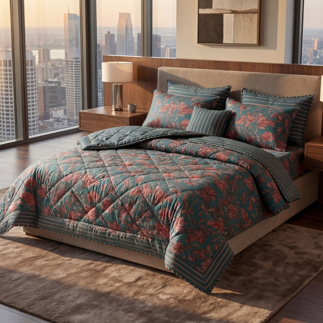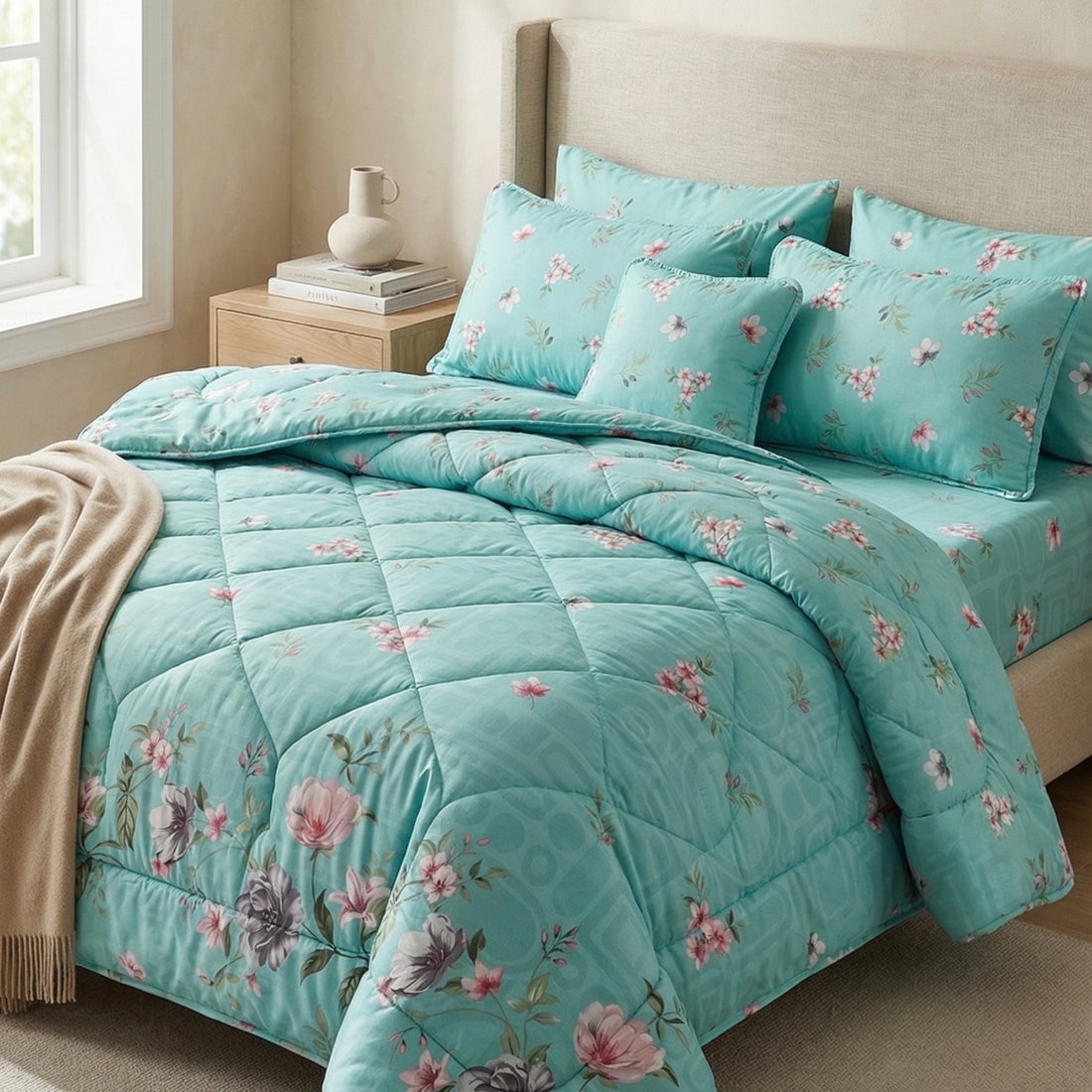 7-Piece Premium Printed Comforter Set – King Size | Aqua Green