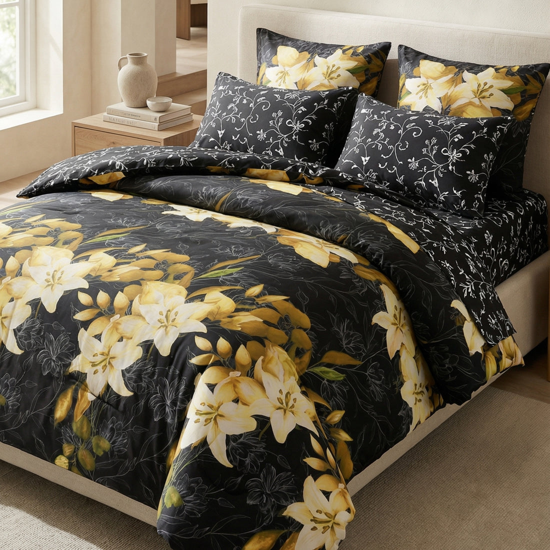 7-Piece Premium Printed Comforter Set – King Size | black