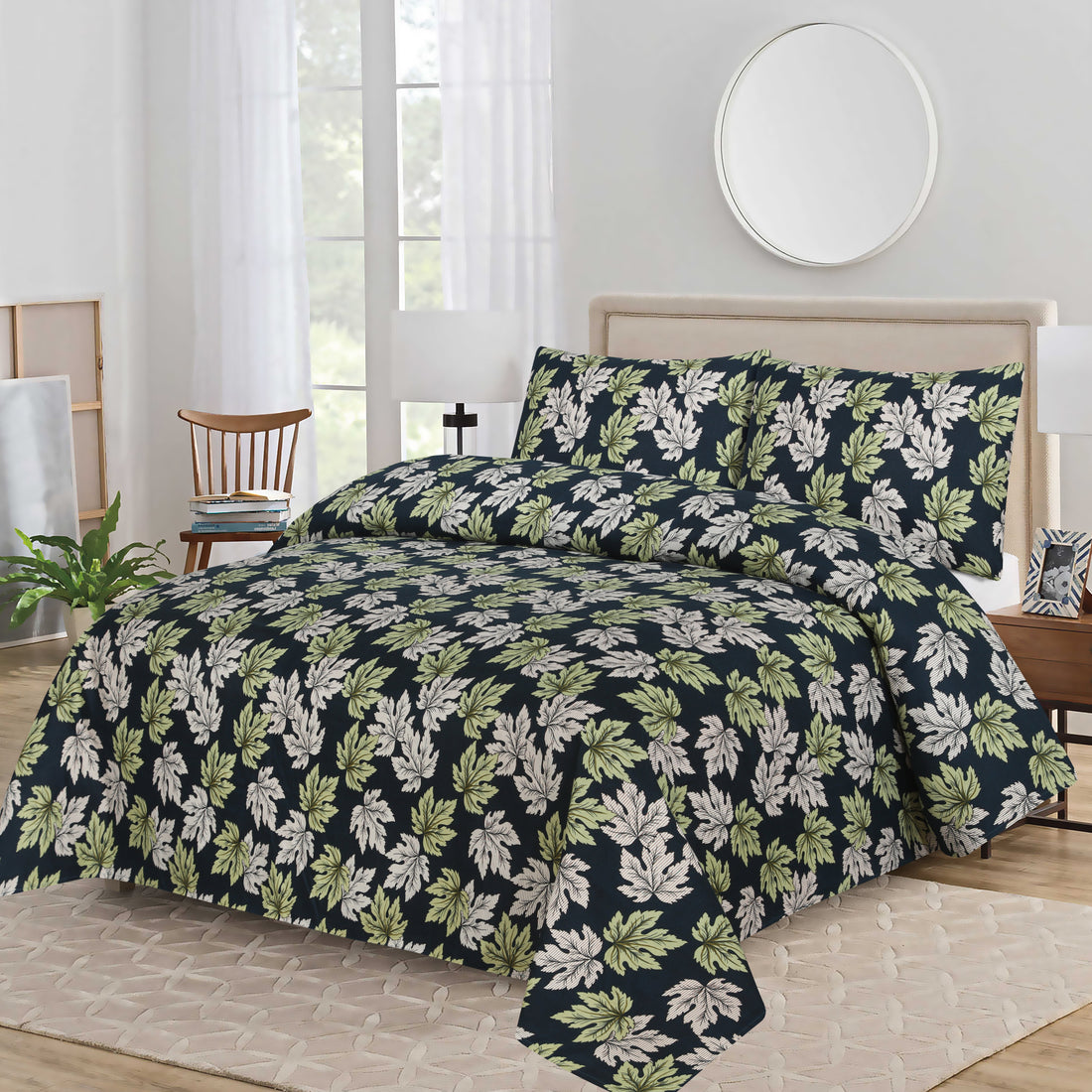 Floral Micro Bedsheet King Size - Black and Leafy Green