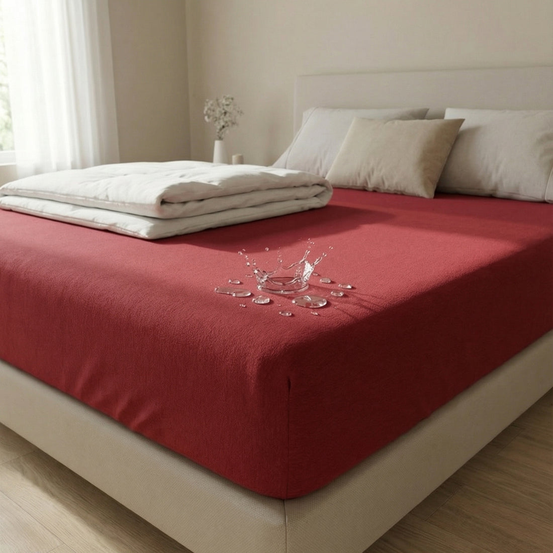Waterproof Cotton Terry Mattress Protector – King Size (RED)