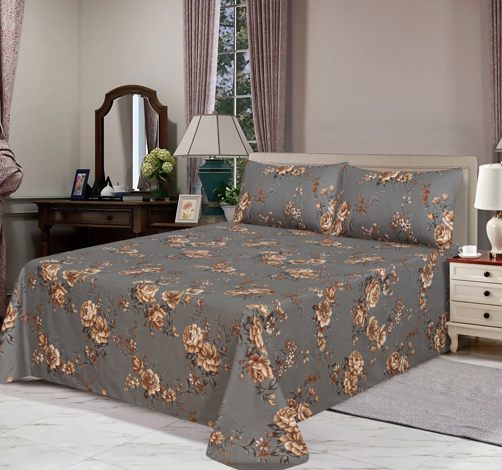 Meestu by Ahmad Fiaz Textiles brings you the 3 Pcs Printed Stitched King Size Bedsheet Set, designed for comfort, durability, and timeless elegance. Made with 100% premium microfiber (GSM 130+), this bedsheet set is soft, breathable, and silky smooth — perfect for everyday luxury.